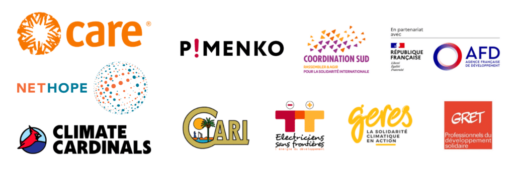 These courses have been developed and translated through NetHope’s Climate Intersections Grant. They are based on existing French e-learning modules that were developed as part of the “Projet d’Appui à la Mobilisation des ONG françaises sur le Climat” – phase 4 (PAMOC4). PAMOC4 is implemented by the Commission Climat & Developpement from Coordination Sud, under the coordination of GRET, CARE France, Geres, Electriciens Sans Frontières, and CARI, with co-financing from the Agence Française de Développement (AFD). Nevertheless, the ideas and opinions presented do not necessarily represent those of AFD.